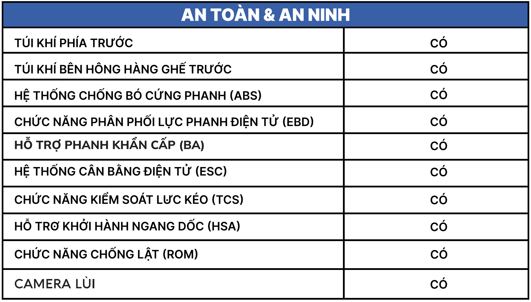 Hệ thống phanh ABS (Anti-lock Braking System) chống bó cứng, giúp duy trì khả năng lái khi phanh gấp.