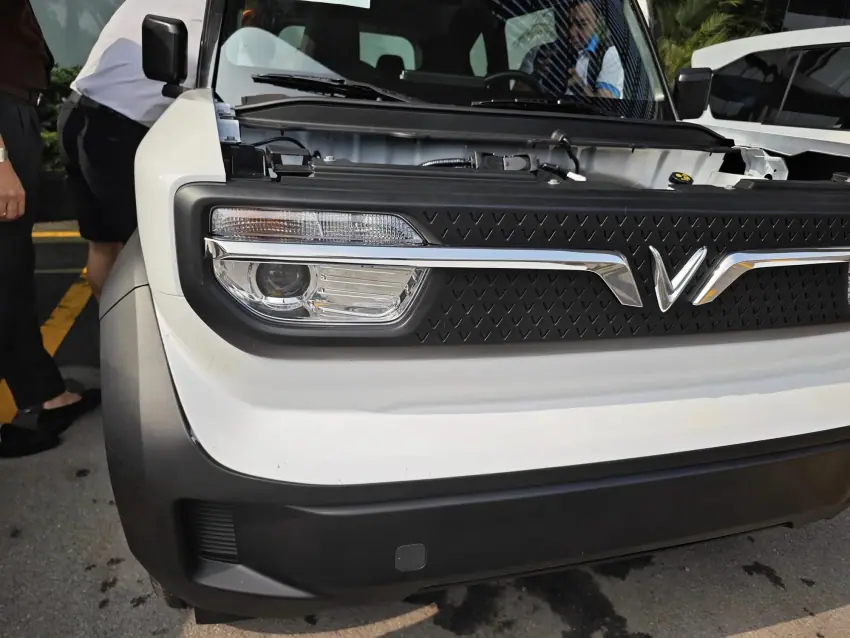 Đầu xe Vinfast VF3 mang các đường nét vuông vức, cao ráo nhằm tối đa hóa không gian nội thất trong xe. Nắp capo phẳng dựng đứng, phía sau có gờ nhô cao càng làm tăng thêm vẻ bệ vệ, chắc chắn khi di chuyển.