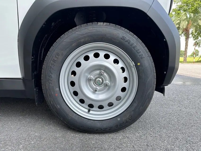 Nổi bật trên VinFast VF3 là bộ mâm xe 16 inch đầy ấn tượng, lớn hơn 4 inch so với đối thủ Wuling Hongguang Mini EV và sở hữu lốp rộng hơn 35 mm. Hứa hẹn mang đến khoảng sáng gầm xe rộng rãi.