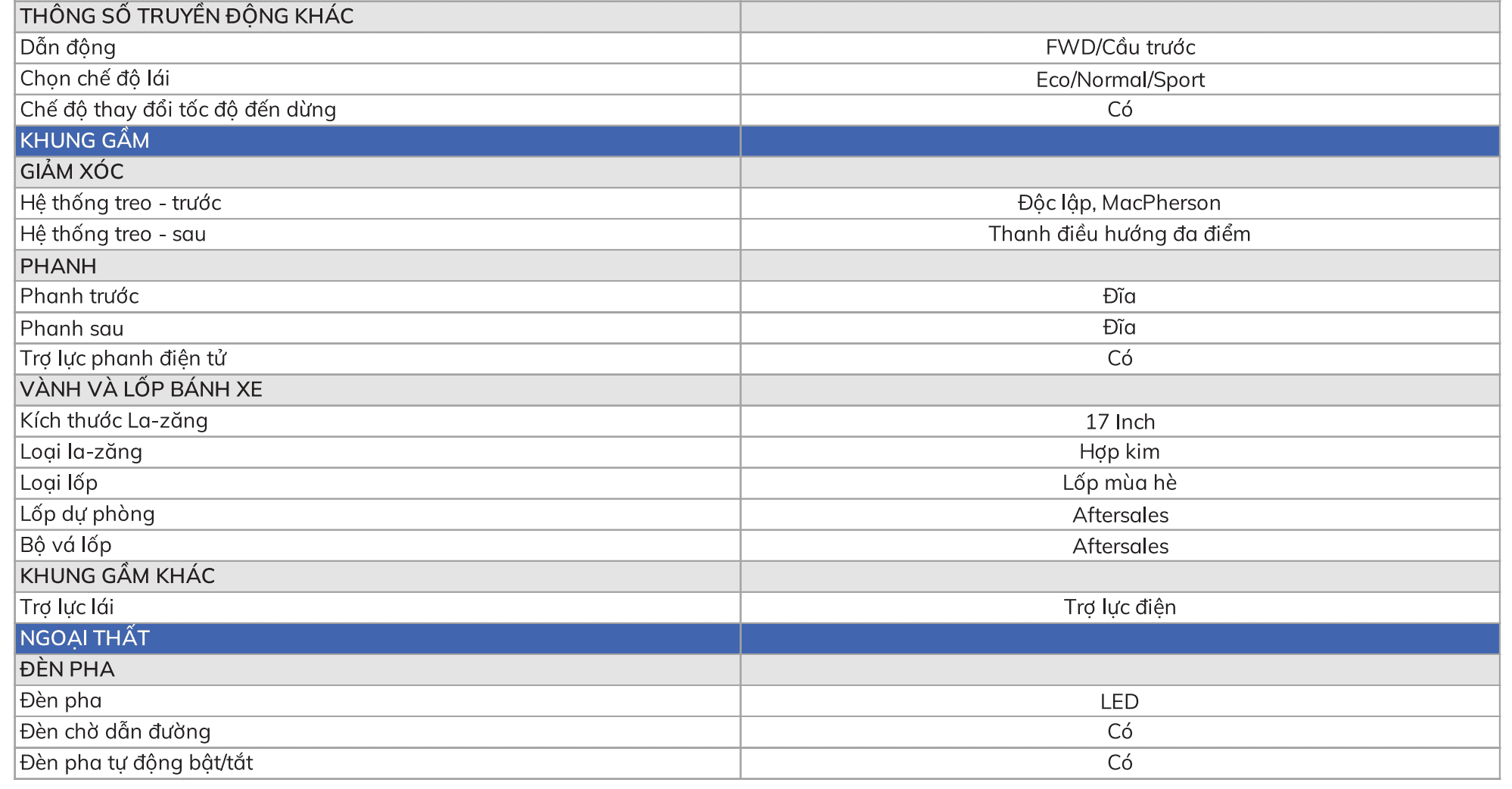 Xe sở hữu hệ dẫn động cầu trước (FWD) cho khả năng bám đường cao, giúp người lái dễ dàng làm chủ khi di chuyển trên đường trơn trượt.An toàn