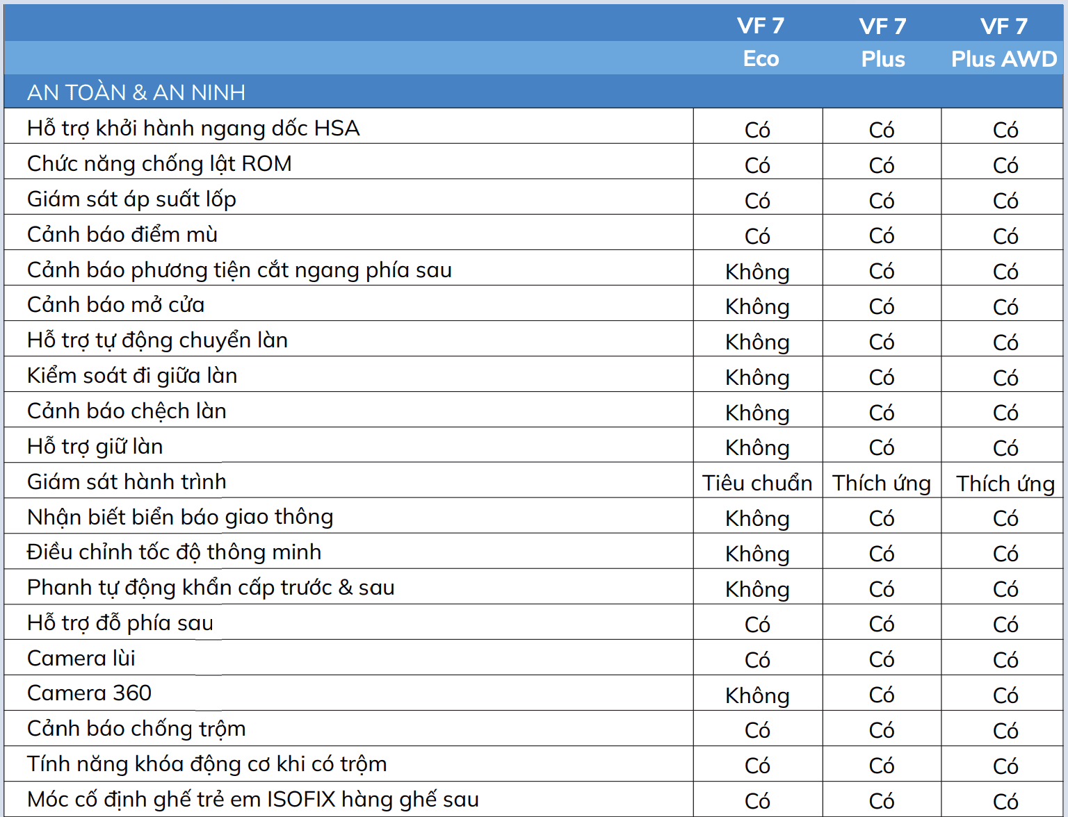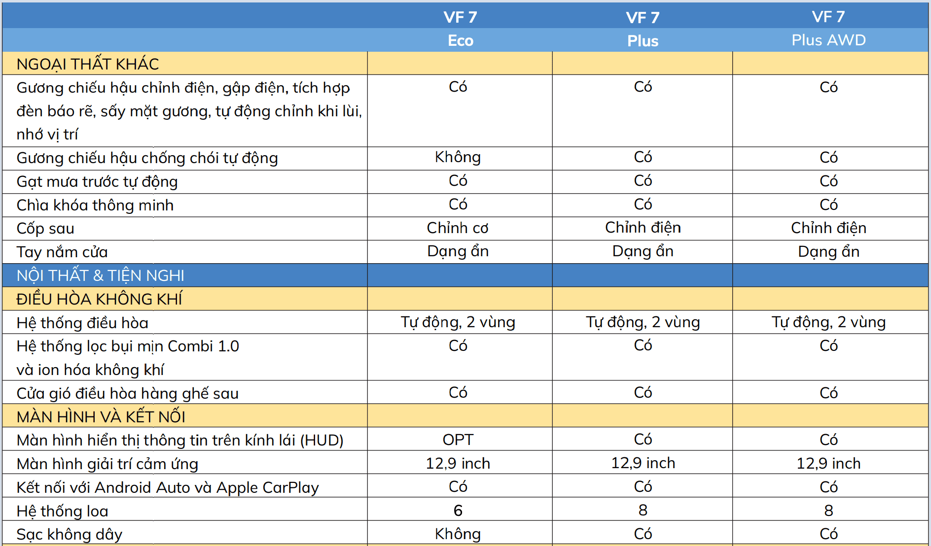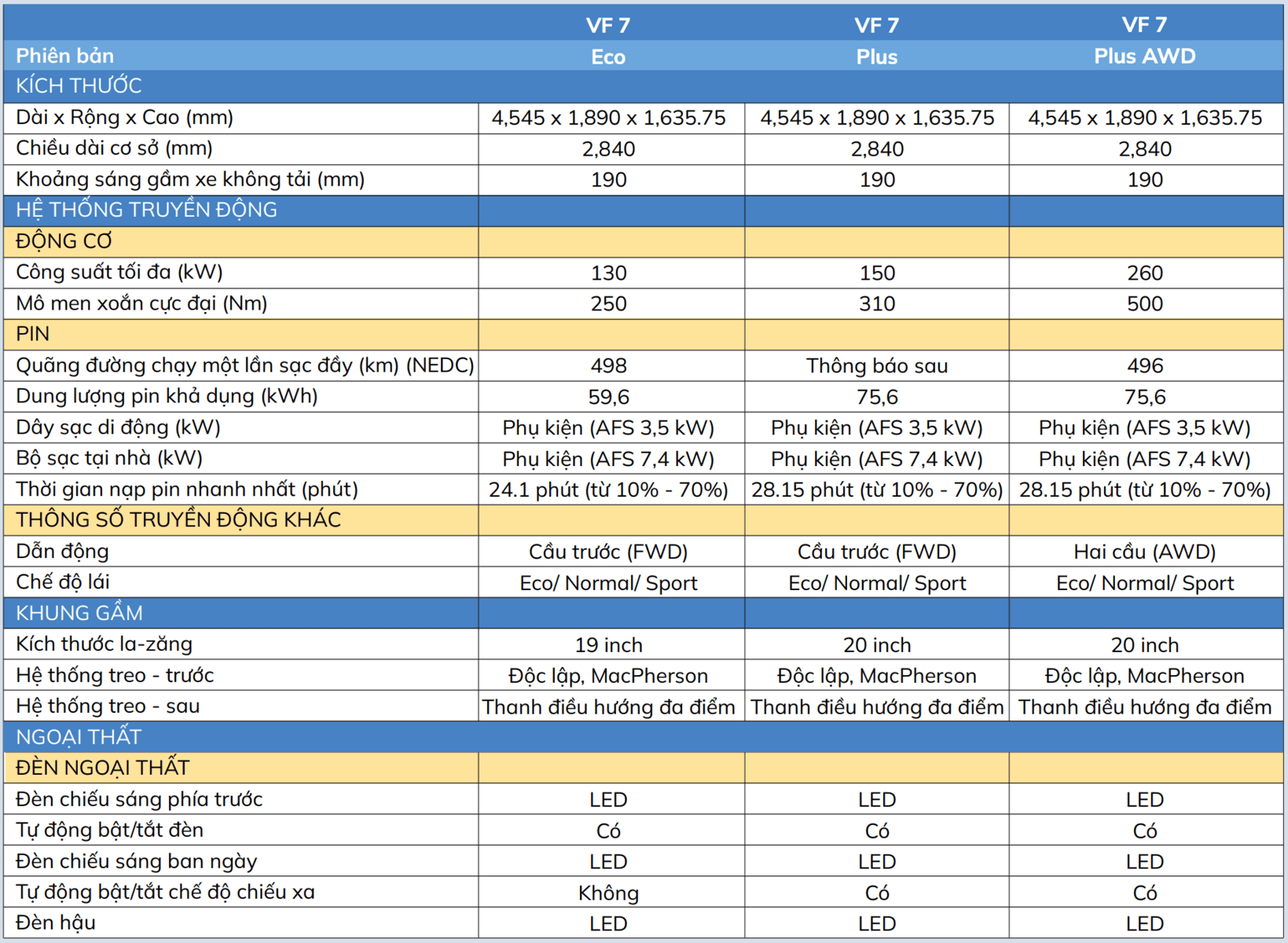 | VF7 ECO (tiêu chuẩn 1) | 799.000.000 VNĐ |