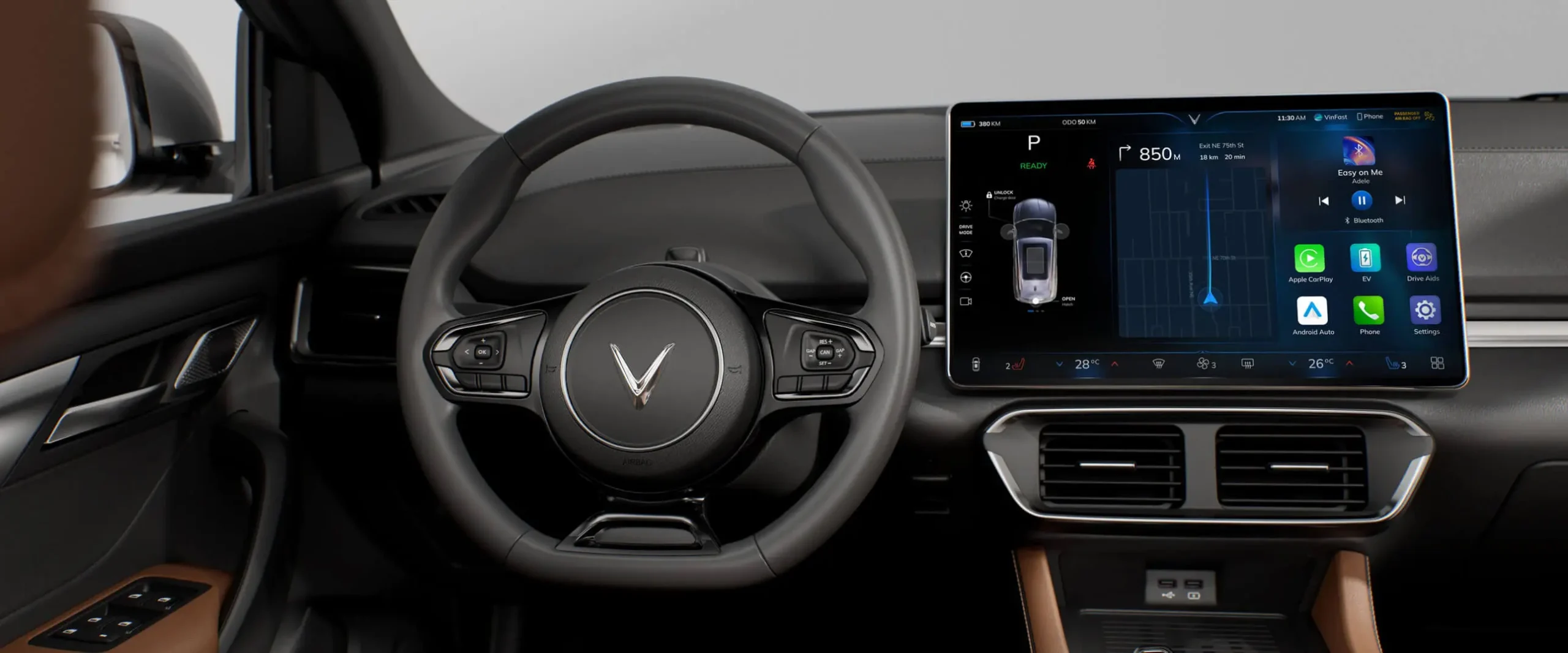 Không chỉ tích hợp khả năng sưởi, vô lăng của VF 8 còn có thể ghi nhớ và tự động điều chỉnh theo thói quen lái xe của bạn.